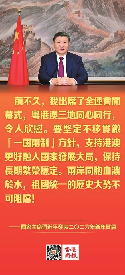 【香港商報訊】記者林駿強報道:國家主席習近平於新年前夕發表2026年新年賀詞,總結國家「十四五」時期極不尋常的歷程和來之不易的成績,指出2026年是「十五五」規劃開局之年,要錨定目標任務,堅定信心,扎實推動高質量發展,並對香港未來發展寄予厚望。對此,香港特區行政長官李家超和特區政府幾位主要官員分別於社交平台作出回應,表示香港要把握好「十五五」開局之年的各項機遇,更好融入和服務國家發展大局。