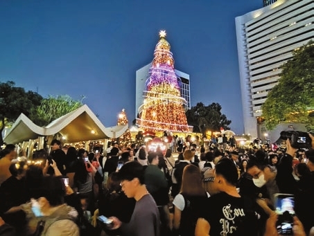 聖誕元旦假期期間,大批旅客及市民觀看燈飾。 資料圖片