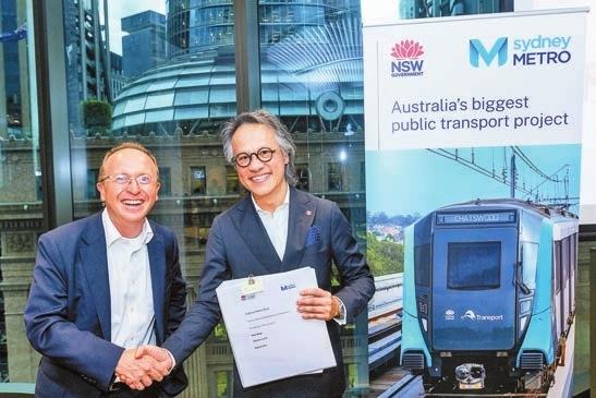 悉尼地鐵行政總裁 Peter Regan(左)與港鐵總經理—業務拓展任百年簽署合約。港鐵提供