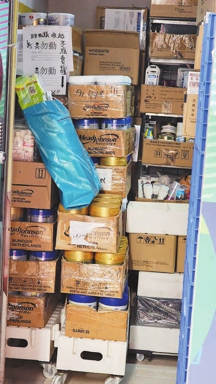 回收的奶粉已放在貨倉等退回。 記者 何家驊攝