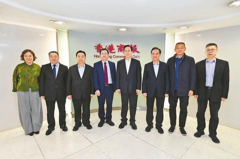 河南省政協主席孔昌生(右四)一行到訪香港商報,與商報高層合照。