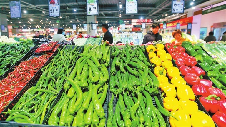 CPI同比漲幅擴大主要是食品價格漲幅擴大拉動,其中鮮菜和鮮果價格漲幅分別擴大至18.2%和4.4%。圖為消費者在山東省臨沂市平邑縣一家超市選購蔬菜。新華社