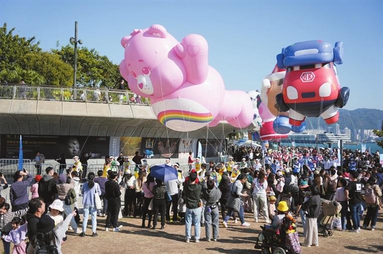 【香港商報訊】「Merry Balloon Parade」輕氣球巡遊昨日於西九文化區海濱一帶舉行,近20個國際知名及本港 IP 角色的氣球先後登場,吸引過萬市民及遊客到場打卡。