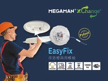MEGAMAN 推出XChange EasyFix模組,即可減少處置整個燈具而對環境造成的影響。