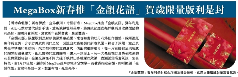 MegaBox新春推「金韻花語」賀歲限量版利是封