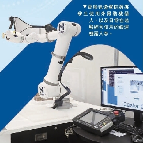 香港建造學院教導學生使用外骨骼機器人,以及日常在地盤經常使用的搬運機器人等。