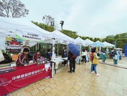 海馬同學會的學生在海洋公園正門售賣和本地農莊合作耕種的收成。記者 李銘欣攝