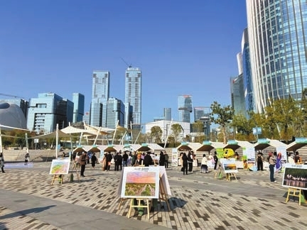 活動現場主題展板沿岸排布,現場展示的48幅紅樹林攝影作品,皆為去年底開展的「同心守護·粵韻紅樹」主題廣東紅樹林攝影比賽獲獎作品,每一幅作品都是對綠美廣東生態建設的生動詮釋。