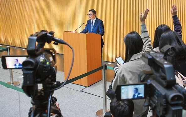 保安局局長鄧炳強表示,法庭裁定黎智英所犯罪行,判決彰顯法律正義,維護香港核心價值。中新社
