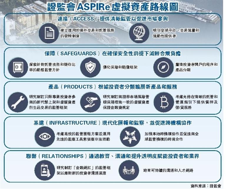 證監會昨日發出新指引,並表示正根據其ASPIRe路線圖擴大產品和服務多樣性。作為其中一項最新措施,容許虛擬資產經紀向其證券保證金客戶提供虛擬資產融資服務,前提是須具備足夠的抵押品及設有穩健的投資者保障。此舉將可促使具備穩健信貸狀況及抵押品的保證金客戶更積極參與虛擬資產交易,繼而在風險可控框架下提高香港市場的流動性。