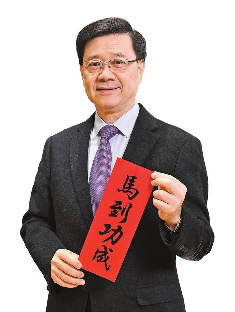 香港特別行政區行政長官李家超 駿馬揚蹄喜迎春,春回大地展宏圖。新年伊始,我祝願《香港商報》讀者萬事勝意、財源廣進。踏入丙午馬年,香港會發揮「一國兩制」下擁有國家機遇和國際機遇的雙重疊加優勢,全面融入國家發展大局,深化國際交往合作。我們會主動積極對接國家「十五五」規劃,為香港特區制定五年發展規劃,全面提升香港競爭力。特區政府將堅持和完善行政主導,提升行政效能,更好結合有為政府與高效市場。我們會積極破解社會老大難問題,進一步深化改革,增進民生福祉。我祝願國家民康物阜,香港百業興旺,香港市民四季平安。