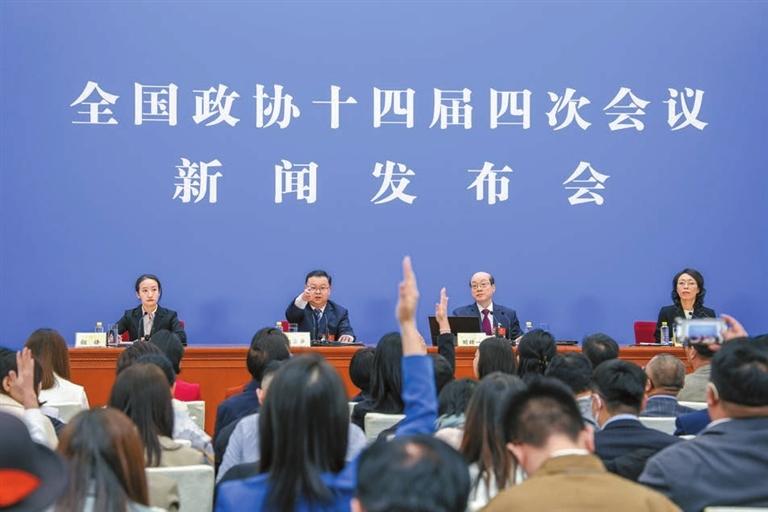 昨天下午,全國政協十四屆四次會議新聞發布會在北京人民大會堂舉行。 新華社