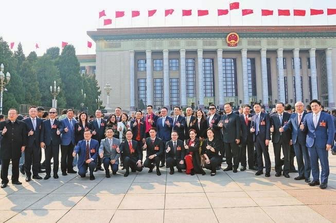 3月12日,十四屆全國人大四次會議在京閉幕。圖為會前港區全國人大代表在人民大會堂前合影。中通社