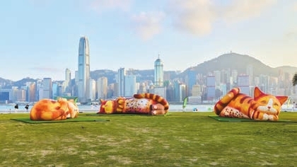 及ELEMENTS圓方火區L1內容:由西九演藝呈獻、第三屆「西九家FUN藝術節」(藝術節)現已揭幕,藝術節焦點之一、由英國創意工作室AirGiants創作的《夢遊喵境》首度在亞洲展出。該作品去年於英國曼徹斯特博物館首展,是次來港為其首次在歐洲以外地區展出。藝術團隊特意為今次藝術節,將裝置中原有的單隻10米長巨型貓咪,擴展為「兩大一小」的貓咪家庭。作品巧妙融合聲音、燈光及觸感互動,貓咪尾巴會悠然擺動,觀眾可以輕靠充氣巨型貓咪,或者輕撫貓身,感受「牠們」的呼嚕聲與心跳律動。展品外型趣致,恍如在繁忙都市中創造一片寧靜綠洲,探討關懷與同理心,讓觀眾在與貓咪的互動中重拾童心,感受人與人之間的溫暖連結。 記者:怡