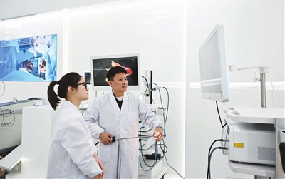 无感植入“芯片”,就能连续15天实时监测人体血糖,智能建议给药和食疗配餐;用于微创手术中的4K荧光内窥镜摄像系统,相当于体内放置“高清地图导航”精准定位肿瘤;微创手术中,超声软组织切割止血设备可实现边切割边愈合……在上饶高铁经济试验区的华东数字医学工程研究院(以下简称“华医研”),这些过去在科幻片中才有的“硬核”医疗场景,如今真实地呈现在记者眼前。
