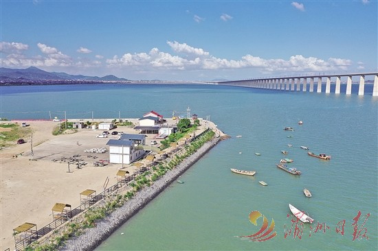 枫亭镇拥有仙游唯一的海岸线,湄洲湾跨海高铁大桥如一条蜿蜒的巨龙横卧在深蓝色的海面上,气势恢宏。海岸一角的海滨村,是仙游县、城厢区和泉州市泉港区的分界线,独特的地理位置让该地成为游客们拍照打卡的热门景点。