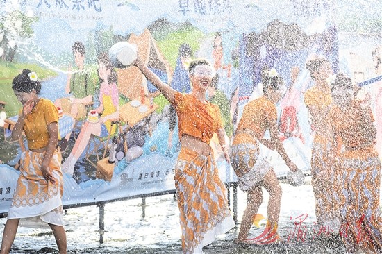 8月中旬,记者走进仙水洋,湖畔的浅水广场上,身着傣族服饰的姑娘们正随着鼓点跳起傣族舞蹈,灵动的身姿与水花相映成趣,仿佛将西双版纳的热情与仙水洋的清凉完美融合。不远处,一场别开生面的泼水活动正在上演,游客们手持水盆、水枪互相泼水、喷水嬉戏,欢声笑语此起彼伏。
