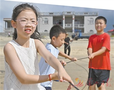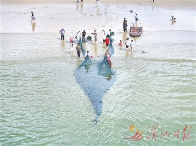 8月19日,秀屿区南日岛燕里湾沙滩热闹非凡,人声鼎沸,渔家号子此起彼伏,宛如一场盛大的海边狂欢。游客与老渔民手挽手,紧紧握住网绳,在“一二、一二”的整齐节奏中合力拉网,将传承百年的传统渔俗化作一场鲜活的旅游体验。这种承载着海岛记忆的古老劳作方式,如今已然成为南日岛生态旅游的新亮点,让都市人在海浪的轻声吟唱中,尽情感受最淳朴的渔家欢乐。