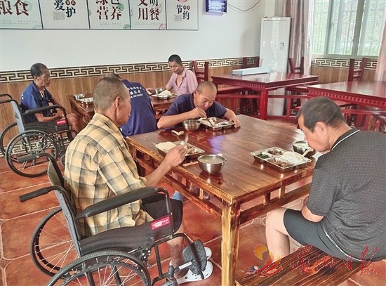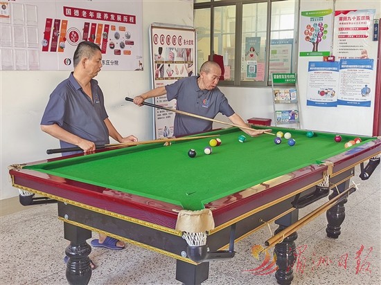 8月25日,记者走进东庄镇大象村嵌入式养老服务中心,只见整体环境整洁有序,功能分区清晰明了。一层为公共场所,设有村卫生所、十音八乐训练室、台球区、乒乓球区。二至四层为住养房,包含日间照料午休用房,并设有麻将桌、棋牌桌等。记者看到,住养房间布置简约实用,床铺、电视、空调等生活设施配备齐全,应急呼叫器安装在床头显眼位置,细节处尽显对老年群体的关怀。另外一侧的配套食堂干净明亮,操作间厨具摆放规整,墙上的公示栏里贴着本周食谱,各种菜品清晰列明,兼顾营养与口味。
