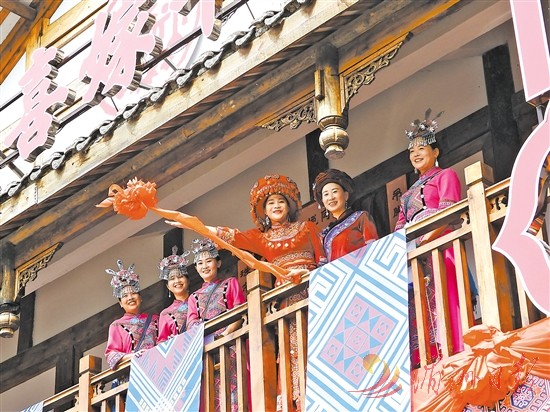 8月26日,在四川省达州市巴山大峡谷景区,演员为游客表演迎七夕土家族婚嫁民俗。七夕将近,多地开展丰富多彩的民俗活动,传承和弘扬中华优秀传统文化。