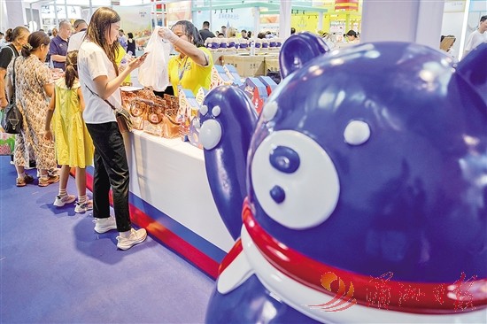 8月27日,游客在第十五届中国—东北亚博览会国际及港澳台特色商品馆内选购俄罗斯特色商品。8月27日,第十五届中国—东北亚博览会在吉林长春开幕。新华社记者 许畅 摄