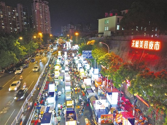 据悉,天桥美食夜市自4月30日正式开市以来,日均接待游客1万多人次,月均销售额达400多万元,成为带动夜市经济发展的“新引擎”。