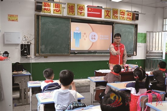 活动中,青年志愿者们结合日常生活中存在的安全隐患现场进行提问,引导孩子们积极思考,以通俗易懂、生动有趣的语言向孩子们讲述了“生活中的安全用电”“电的危险”“科学用电”等用电知识。在轻松欢乐的氛围中,孩子们积极性满满。这一活动不仅对安全用电、节约用电宣传起到了良好的效果,更进一步加深了孩子们对用电知识的理解。