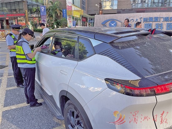 就在此时,对讲机传来新线索:“文献东路有车辆异常停车!”执法人员随即兵分两路,记者跟随该大队二中队赶到第二现场,发现2名乘客正小跑离开一辆白色轿车。