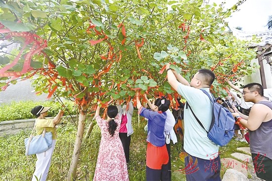 本报讯 (全媒体记者 吴琪娜 通讯员 程黎婷 文/图)8月29日,天妃故里遗址公园以“七夕祈愿·妈祖赐福”为主题,举办沉浸式游园活动,吸引众多游客在体验传统民俗、感受妈祖文化中欢度佳节。
