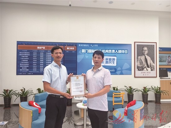 近日,在城厢区凤凰山街道新塘社区群众的见证下,厦门国际银行莆田分行工作人员从新塘社区党委书记江爱建手中接过“敬老助老服务标杆单位”荣誉证书(如图)。这是该行继获评莆田市“智慧助老型”示范网点后,在适老化服务方面的又一次得到外界肯定。