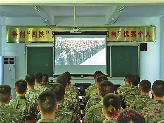 武警第二机动总队某支队组织官兵观看阅兵直播。 杨湛 林基斌 摄 |