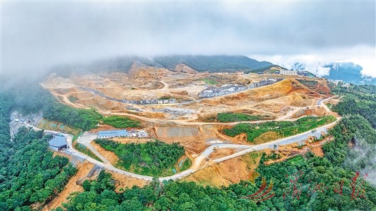 仙游木兰抽水蓄能电站是国家抽水蓄能中长期发展规划(2021—2035)中的“十四五”重点实施项目。图为9月9日,该项目建设现场,数十台机械轰鸣,运输车辆穿梭,主坝填筑区域施工正酣。全媒体记者 蔡昊 摄