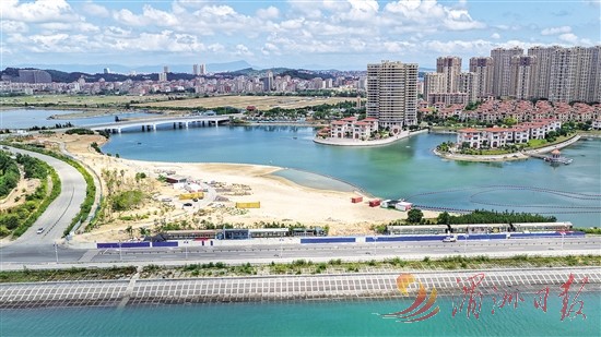 9月7日,记者在现场看到,该项目场地由大型水域和陆域沙滩共同构成,沿岸绿植葱茏,四通八达的公路串联起错落有致的现代建筑群落,与澄澈晴空、悠然白云交相辉映,铺展出一幅壮美的海洋生态人文长卷。
