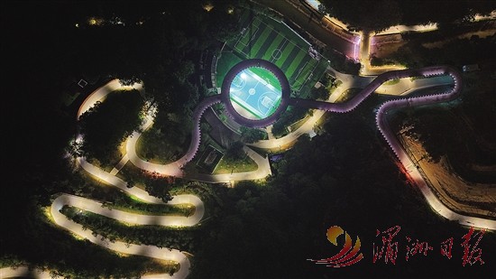 “没有星星的夜里,就到莆阳福道看万家灯火汇聚的点点‘星光’。”摄影记者放飞航拍机,只见镜头里蜿蜒的莆阳福道流转着金色光晕,宛如一条发光的游龙盘踞山间,与城区错落有致的楼房灯光交相辉映。