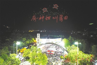 当晚,数百架无人机以浩瀚夜空为幕布,变幻出“莆甜龙眼”“丰收节”等特色图案,搭配璀璨绽放的烟花,给人们带来一场震撼的视觉盛宴,引得欢呼声阵阵。