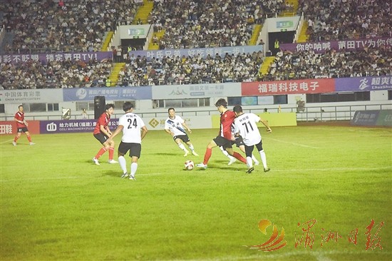 昨晚,2025莆田市足球联赛半决赛首场比赛在市体育中心开踢。 全媒体记者 杨洲 摄 |