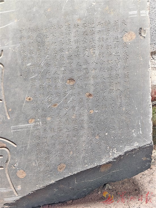 “我是在枫亭白蛇过路梅岭杉木场发现这块墓碑的。”书画爱好者朱育洪回忆道,20多年前,国道324线改扩建,墓受损,墓碑被移至路旁。后来,他把墓碑运至朱氏祠堂保存。