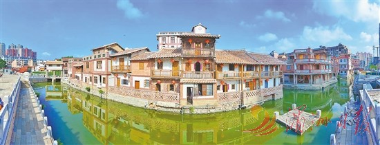 周末,漫步涵江区萝苜田历史文化街区,在端明陡门旁,只见修缮一新的红砖厝矗立河岸,与澄澈的河水交相辉映。一艘海丝扬帆造型的“福船”停泊河面,仿佛从昔日海丝贸易的繁盛图景里缓缓驶来。游客临水赏景,一幅“水绿相融、古厝含韵”的生态画卷,在眼前缓缓铺展(如图)。