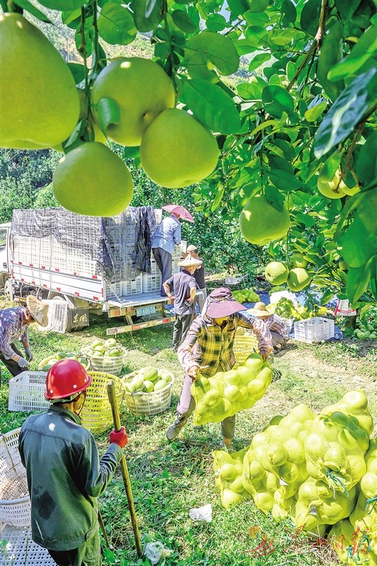 “每年9月下旬至11月中旬是文旦柚的传统采摘期。因今年气候适宜,果实成熟较早,开采时间较往年提前了约10天。”度尾文旦柚协会会长余志成介绍,今年,度尾文旦柚种植面积约1466公顷,硕果累累。前期已通过电商团队积极布局线上销售,线下也与多家供应商、合作商签了订单,销售渠道畅通,市场前景良好。