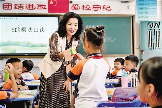 “我来!我来!我来……”学生们争先举手,抢着回答。通过小学生熟悉的魔方,陈秀娟将抽象的乘法形象化,让学生们轻松掌握了数学知识点。