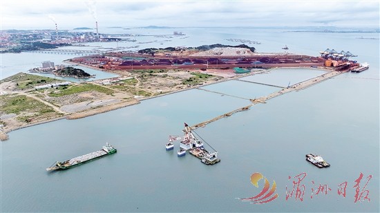 罗屿港口13—15号泊位工程建设3个7万吨级散货泊位,水工主体结构按20万吨级散货船预留设计,码头泊位长约800米。记者在施工现场看到,在15号泊位施工区,工作人员操作半潜驳等专业设备,将高约6层楼的沉箱拖运至预定区域,精准完成安装;13号、14号泊位作业区上,工作人员操作挖机、卡车等,同步进行胸墙棱体等施工。