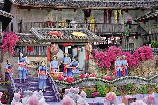 当日下午,主会场所在的岳氏古厝片区,活动在气势恢宏的“丰收鼓”声中拉开帷幕。涵江车鼓、高跷表演、畲族歌舞、湄洲女与蟳埔女服饰展示、泉州踢球舞等极具福建乡土特色的节目轮番登场,来自全省十地市的农民代表手捧自家的“福农优品”登台,绘就一幅“丰收、喜悦、奋进”的生动图景。