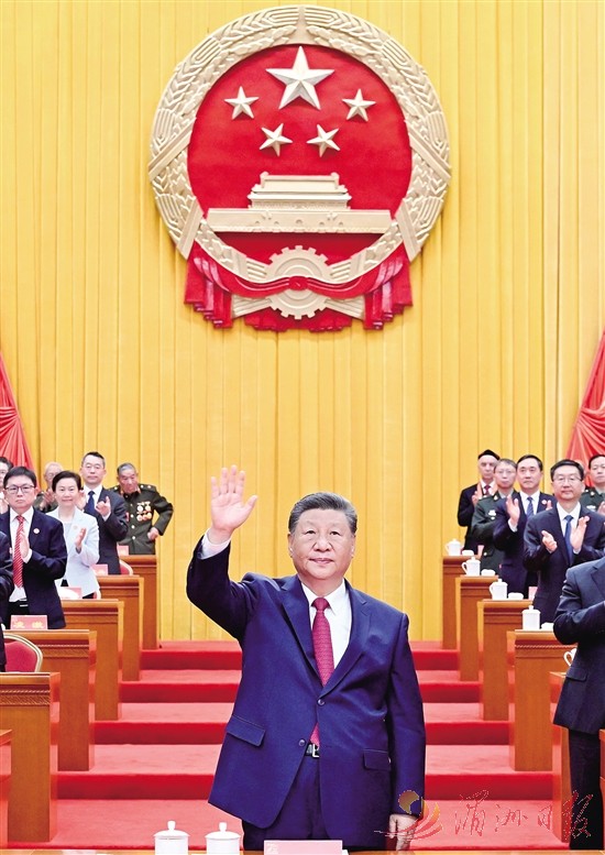 上午10时30分许,在欢快的乐曲声中,习近平等领导同志走上主席台,全场响起长时间的热烈掌声。