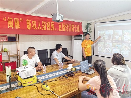 “现在是直播时代,每个人都可以成为网红,都可以直播带货,要有信心……”在该基地办公室二楼的“闽雁”新农人短视频、直播培训现场,庄慕玉给乡亲们鼓气,教授他们手机直播带货的方法和技巧。