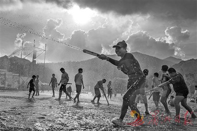 假日里,仙水洋热闹非凡,大人小孩手持水枪嬉戏,水花飞溅,山水环绕间,欢声笑语不断。 蔡昊 摄