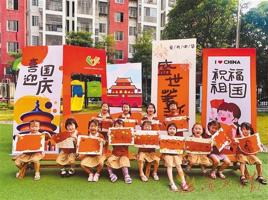 涵江区妇女儿童活动中心幼儿园小朋友以水墨传情,在互动中传承红色基因。