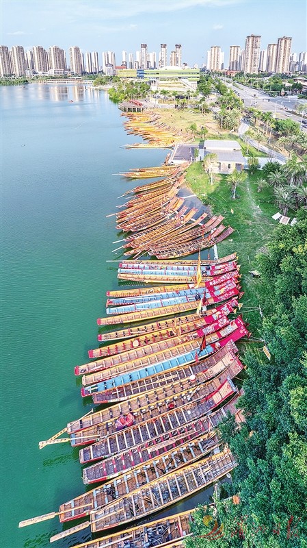 10月2日,莆田161艘龙舟将从玉湖巡游至白塘湖。图为龙舟在玉湖集结。