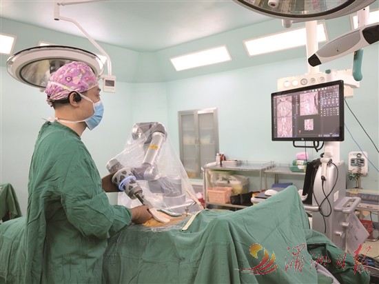 “以前这类手术风险大、恢复慢,现在借助机器人,手术切口小、出血少,患者第二天就能下床活动。”骨二科主任徐建平介绍说。