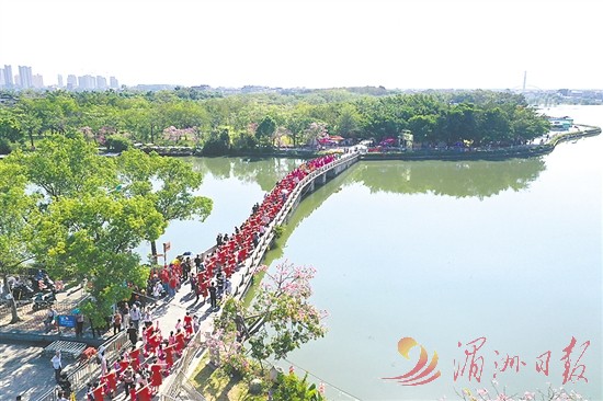 现场,举行了庄重的“行敬茶礼”和热闹的“赞句祝福”仪式。随后,穿着红衣的女子齐挑担盘、领着孩子,沿白塘湖公园福道行进,缓缓走向洋尾村科第坊,集中展现“莆式孝心”,形成一道流动的风景线。