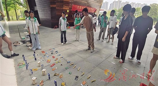 | 图为学生参与趣味套圈活动。 |